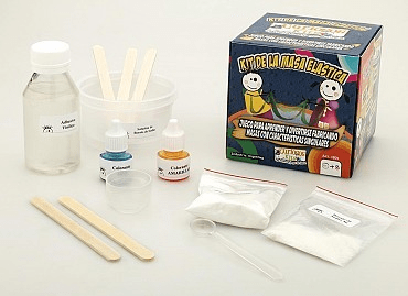 El kit te invita a jugar y aprender sobre la ciencia de los polímeros, encontrarás en el mismo adhesivo vinílico, un polímero artificial.