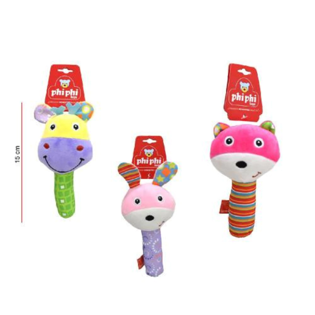 Este sonajero combina diversión y estímulo sensorial, gracias a su diseño ergonómico en forma de bastón fácil de agarrar para las manitos pequeñas. Además, cuenta con un chifle incorporado que emite un sonido suave y entretenido, perfecto para captar la atención de los más chiquitos y fomentar su desarrollo auditivo.
